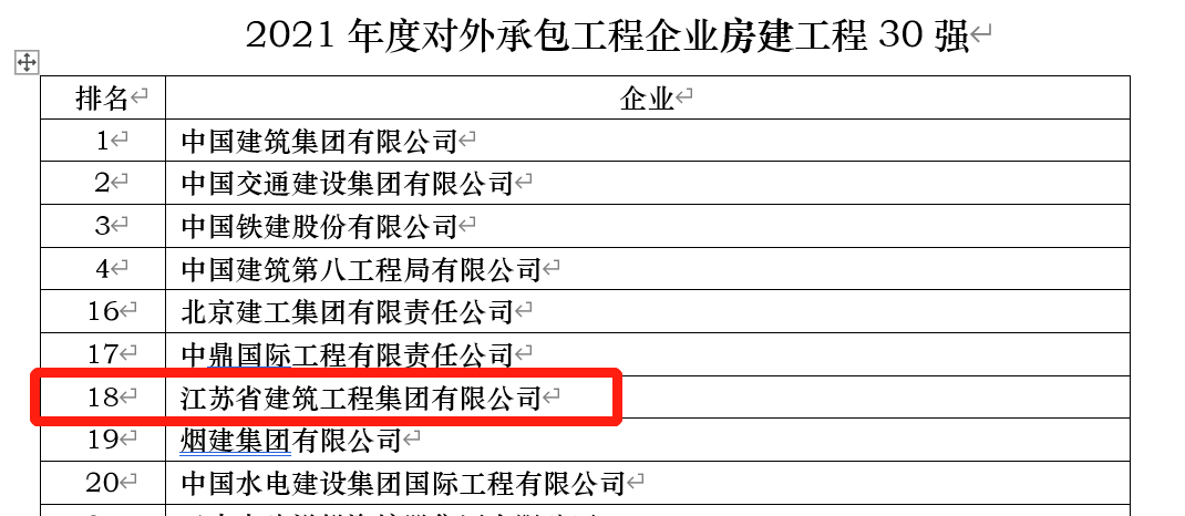 █位列對(duì)外承包企業(yè)房建工程30強(qiáng)第18名